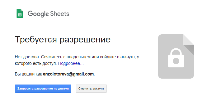 Если вам передается ссылка в Google Docs или Google Sheets, то чаще всего вам необходимо запросить доступ к этому файлу. У вас появляется вот такой интерфейс, в нем вы нажимаете на кнопку “Запросить доступ” или “Request Access” на английском языке. Уведомление соответствующее приходит владельцу сайта, и он предоставляет вам один из типов доступа к файлу: на редактирование, на чтение или на возможность комментирования.